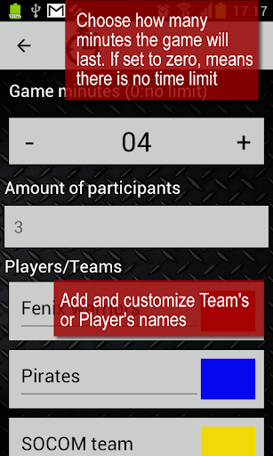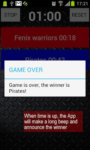 You can set a definite amout ot time to be played, or leave it undefined. If set, the App will make a long beep indicating the end of the game and will show the winner.