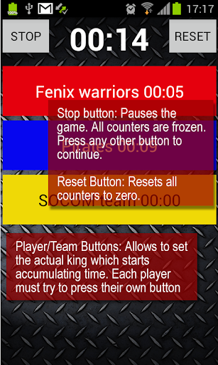 King of the Hill Timer: This timer not only records the total amount of minutes the game will last, but also lets each team or player record the time they owned a certain position.