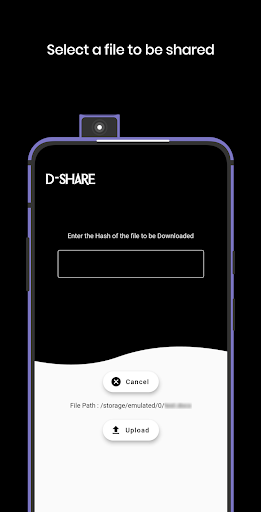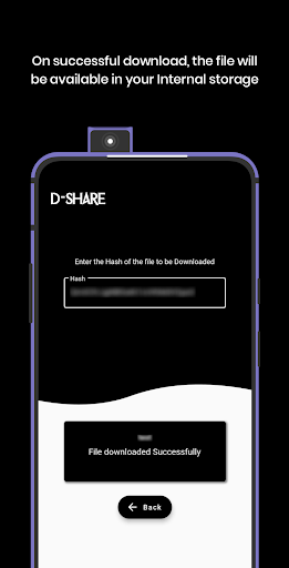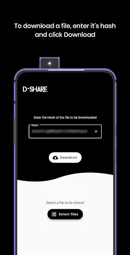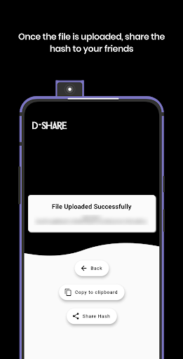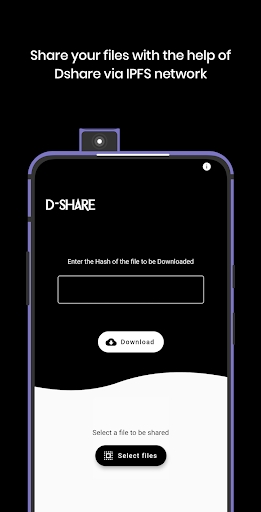 Share your files with the help of IPFS network. Upload your file and share the hash to your friends to download the same.