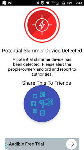 If this application detects the skimmer, please alert your friends, owner of the property and your law enforcement. Please let us know if you know any other skimmer devices. For optimal result keep the phone close to the fuel pump or ATM machine.