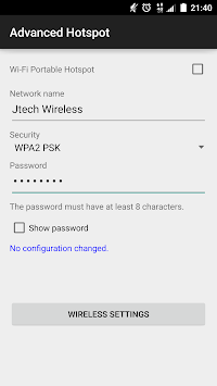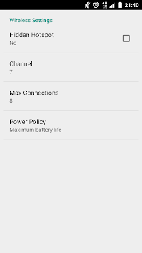 Advanced Hotspot help you easy to use and config your devices' Portable Wi-Fi Hotspot. We support a lot of advanced configurations of Portable Wi-Fi Hotspot. Like setting the channel of the hotspot, or hiding you hotspot, saving you device's power, etc.