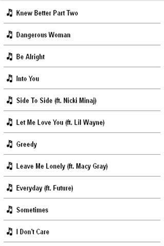 All high quality mobile apps are available for free download. 10,000+ users downloaded Ariana Grande Lyrics latest version on 9Apps for free every week! It is a wonderful app that amazes every player. This hot app was released on 2017-02-24. Download and play this free app for android mobile phone now!