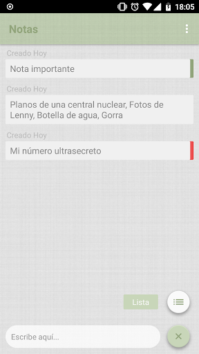 This is a very light application to store notes as a reminder in a simple way, you just have to launch the application and start writing. We can mark the notes with various colors and we can delete and edit our notes. If we eliminate the notes we can access the trash to restore them or eliminate them permanently.