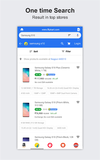 You can compare products prices online across all major online stores like Flipkart, Amazon, Snapdeal, Jabong, Myntra, Infibeam, eBay, PayTM, Shopclues and many more. 10 million products are listed across many categories like Mobile Phones, Tablets, Laptops, Cameras, TVs, Personal Appliances, Books and more accessible with just one click.