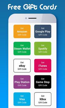Free Gift Card Generator app is an unofficial application and is not associated with original Amazon Mobile LLC ,eBay Mobile, Game Stop, Game Twist, Google Inc., Apple Inc., Netflix,Target , Wallmart , Microsoft Corporation, Spotify, Inc.,Valve Corporation , PlayStation Mobile Inc., PayPal Mobile, PlayStation Mobile Inc by any manner.