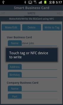 - By using this app, you can make the business card and share by tap NFC tag or NFC device.