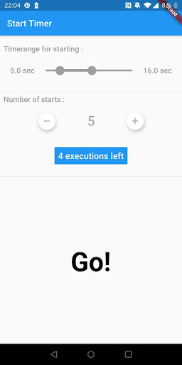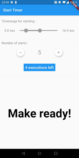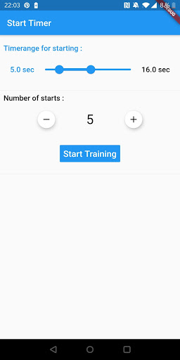 The app is for people who want to improve their arm wrestling skills. An important exercise in arm wrestling is to immediately build up maximum pressure on command. This app can be used to do this with an exercise partner. For this purpose, a period of time and the number of repetitions can be set in the app. The random generator built into the exercise app then triggers within this period of time and the exercise partners build up counter pressure. The pressure can be reduced after a few seconds and the training partners wait for a new start signal. This improves the reflexes of the exerciser. In addition, the muscles get used to these loads. Please note that you use this app at your own risk. I am not responsible for any injuries. I can highly recommend warming up your muscles thoroughly.