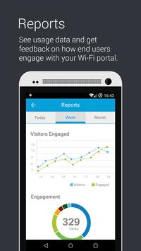 7. Reports with usage analytics and engagement metrics to show how end users are interacting with the Wi-fi portal.