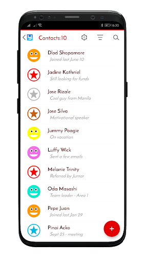 * Powerful contacts management using the search and filter button