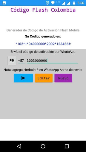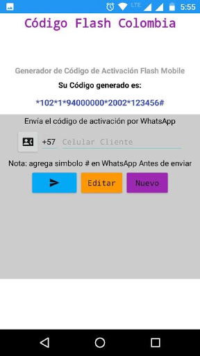 Esta aplicación facilita el proceso de activación de lineas Flash Mobile en Colombia debido a que mediante ella se puede generar el código de manera sencilla y facilitar enviarlo al cliente directamente a WhatsApp