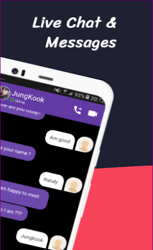 Jungkook fake video call and chat is a simple and easy application for you to make a fake call video with your Celebrity Jungkook from BTS and chat live with him.