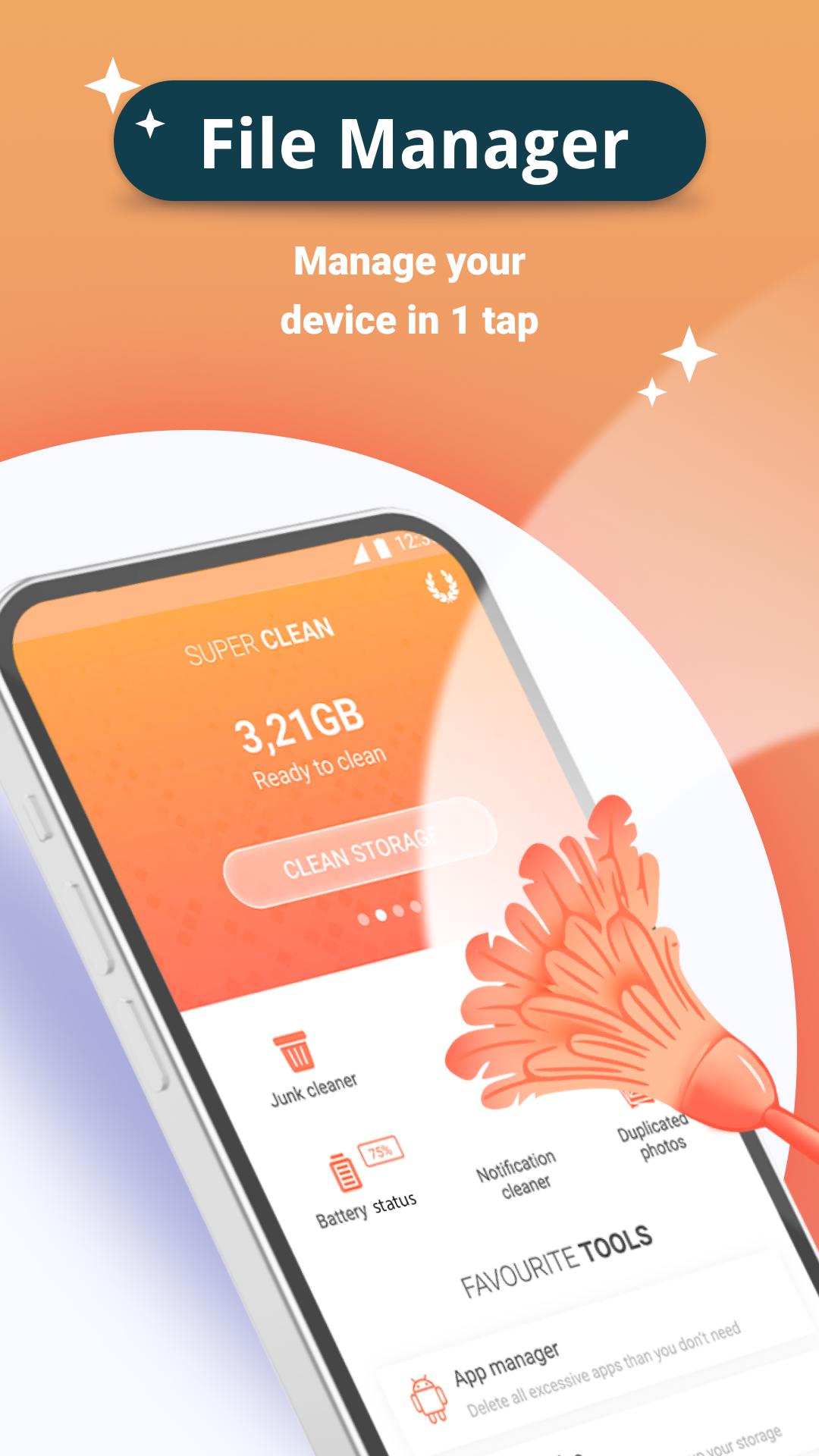 Remove all extra cache files and duplicated photos, check installed apps for sensitive permissions, easily manage your phone storage and much more.
