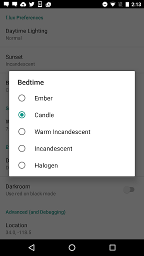 f.lux removes the bright blue colors from your phone to help you wind down at night and returns your screen to normal the next day. This preview version is not a final release. It requires a rooted phone, and otherwise it will not do much. We appreciate your help with bug reports and feature questions.