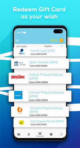 Turn your coins into cash reward or gift cards valid for different apps