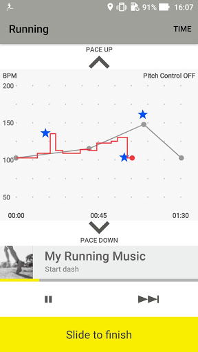 This App analyzes the BPM of your archived music in device and automatically creates the most suitable playlist for running distance, time and pace. Enjoy running with music and get faster efficiently, reach your target time!