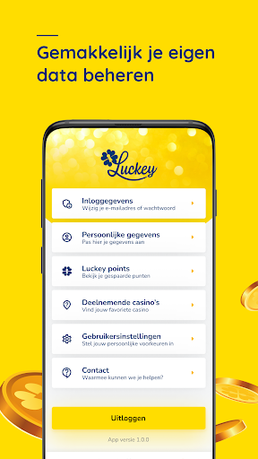 Com este aplicativo, você pode rapidamente entrar em 85 cassinos (de 1 de outubro).Você poupa luckey aponta com sua visita de cassino, que você pode usar para participar de promoções especiais para membros de luckey.Você também estará sempre ciente das últimas notícias de luckey!Faça o login com sua conta de luckey e tenha acesso às informações da sua conta e às promoções especiais.