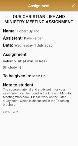 *** PLEASE NOTE: This App is designed to be used together with the JWScheduler Desktop Edition which can be downloaded from www.jwscheduler.com. If your congregation is not using the JWScheduler Desktop Edition, you will not be able to use this App. ***
