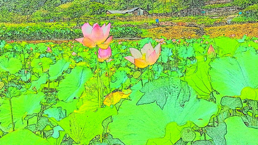 2. click "three-dot" icon on the lower right corner or touch the left edge of screen. Some icons will show up on left side of screen. Click the "pen" icon and then select the photo you want to transform. It may take some time to handle the transformation. You can choose the output resolution and other items in setup menu. When you think the picture is ok, click the tick mark (or check mark) below to save.