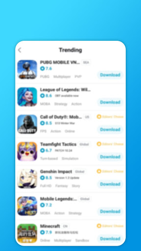 It shows you where you can find games trending list like tap tap pubg and more games.
