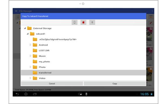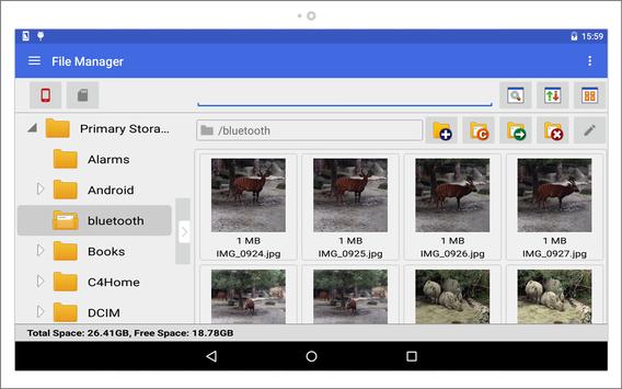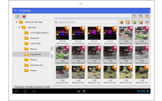 The image/video thumbnails are automatically generated, moreover, for the folders and normal files, it will show the symbolic link, icons, last modified information and size. For tablet , it shows tree list of internal disk on the left panel and detail list on the right panel. For phone , it shows tree view at the beginning.