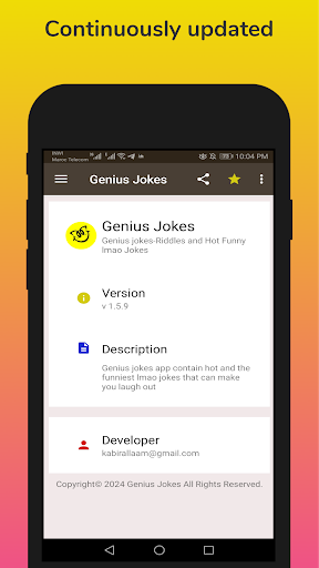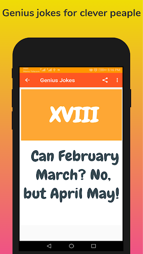 Genius jokes app contain smart jokes only smart people can understand it, Laugh or groan these jokes will certainly not leave you anytime soon, it has the funniest jokes that can make you laugh out, In this app, you can read jokes and share it with your friends with easy click button.