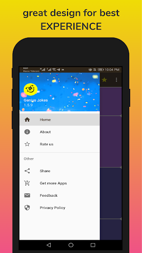 The genius jokes app has a lot of hilarious jokes that will make you cry, it usually feels good when we experience a good laugh and when we make someone else laugh so go ahead and share Genius app jokes that have a funniest and cool jokes that can make anyone how to face a bad day laugh out loud.