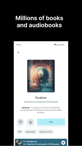 The app has an in-built audio player to browse and listen to playlists seamlessly, a PDF and text reader with features like bookmarks and continue-reading, and a download manager to let you save files to your device and share freely.