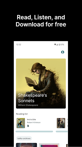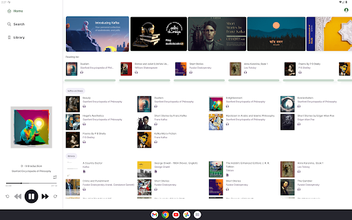 Kafka works on Android phones and tablets, so you can take your books and audio wherever you go. We are also contributing Kafka Originals to the public domain.