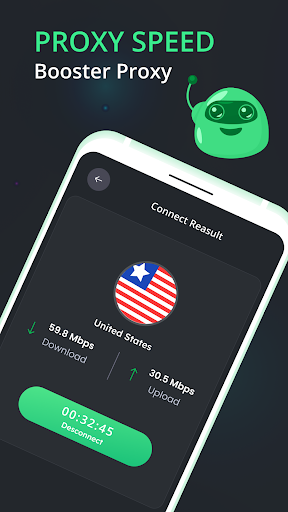 🔹 Easy to use, one-click connection to proxy server.,High-speed bandwidth and a large number of global server, suitable for Android devices.