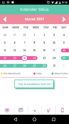 Menstrual Diary adalah aplikasi tak berbayar yang dibuat khusus untuk perempuan, yang dapat mencatat dan menentukan menstruasi, berdasarkan data siklus menstruasi yang kamu masukkan. Informasi yang didapat dari Menstrual Diary, dapat digunakan untuk berbagai hal, seperti; menghitung siklus menstruasi, memantau gejala-gejala sebelum dan saat menstruasi, sehingga kamu dapat menyiapkan kebutuhan pembalut dan merencanakan aktivitas sehari-hari secara mudah.