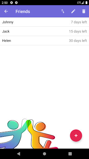 Then, add buddies to your groups and set their countdowns. Each buddy will have their own countdown to track how many days until you should reach out to them again.