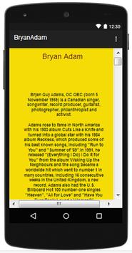 You can listen to the song and know the lyrics, as well as the schedule of Bryan Adam singer concerts in this app.