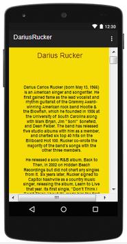 You can listen to the song and know the lyrics, as well as the schedule of Darius Rucker singer concerts in this app.