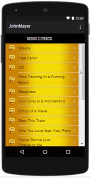 You can listen to the song and know the lyrics, as well as the schedule of John Mayer singer concerts in this app.