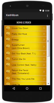 You can listen to the song and know the lyrics, as well as the schedule of Keri Hilson singer concerts in this app.