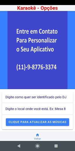 Melhoria ao preencher o Nome/Apelido e o Local na tela de Opções.