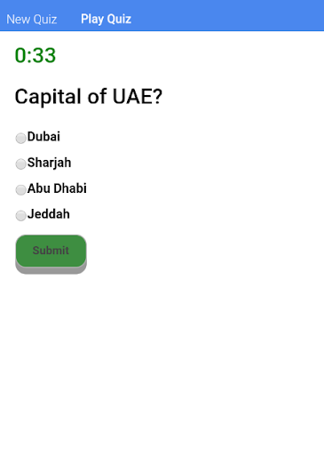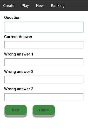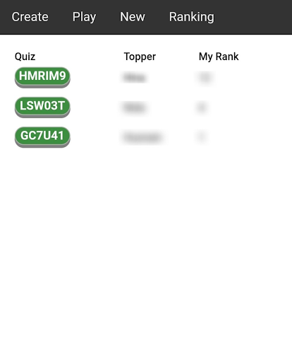 Create unlimited quiz with unlimited questions, get a code and share with your friends. You can also set a time limit for each quiz. The person with most corrected answer will be the winner. Joint winner will be decided in terms of less time taken and correct answers.