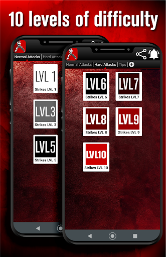 - Strikes, kicks and fighting were classified in difficulty levels, level 1 is for beginners and level 10 is for elite athletes.