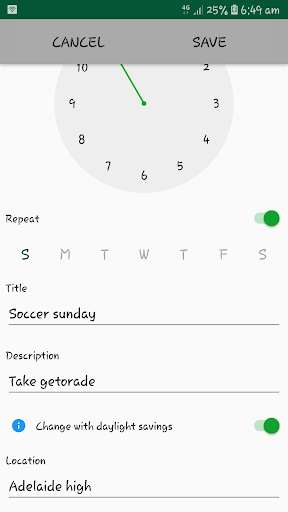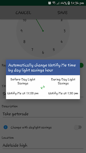 The uniqueness of this app is, you can opt to allow the app to change the notification time automatically as you enter and leave day light saving hours within your country.