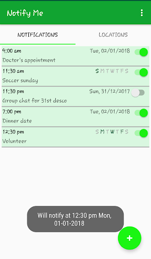 Create quick notifications for anything you want. Just give it a time, date or keep it ongoing and you are done. You can add title, description and even locations if you please. The app automatically groups your notifications for same locations together and gives you a simple view of it as well.