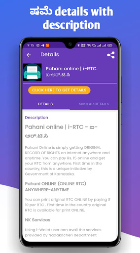 If people need to know their land record details and i-RTC, they can download this app know the information and redirected to government website [https://landrecords.karnataka.gov.in/] for full details.