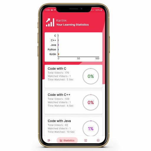 This app confers with a variety of programming languages. Such as C, C , Java, Kotlin, Python. This application is created to help improve the thinking of varied issues associated with Programming. It consists of programming Languages by their subjects and Videos.