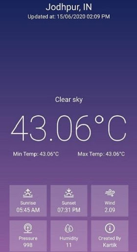 Weather Forecast is very easy to use. Just open the app and let the internet connect to it and it will automatically show the weather. Then you can receive the weather report.