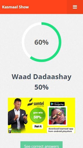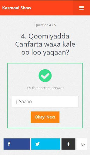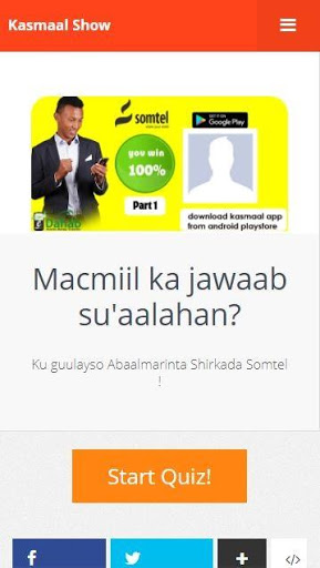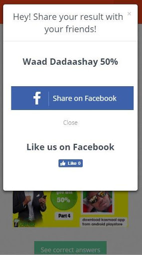 Macmiil ka jawaab su'aalahan kuna sharegaree Facebook waxaad ku helaysaa dhibco aad ku guulaysatid hadii aad noqoto Leaderboard waxaanu ku siin doonaa Mobile ama 4G