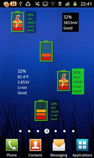 Clear, very easy to read, beautiful battery widget in 2D which provides you a lot of information about battery installed in your phone.