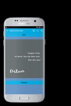 Adapun kata kata selain dilan yang terdapat pada aplikasi ini, seperti kata keren, status baper, status untuk WA, Status untuk IG, status update, kata bijak, dan masih banyak lainnya. langsung aja di download gan, jangan ketinggalan dengan yang lain.