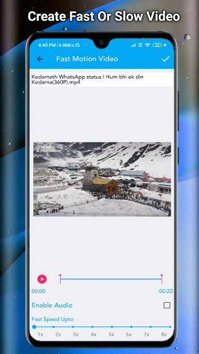 SLOW MOTION VIDEO MAKER :- Create slow motion video of a particular part of video by using trim option or make the whole video slow. Choose any video and select speed like 1/2, 1/3, 1/4, up to 1/10.