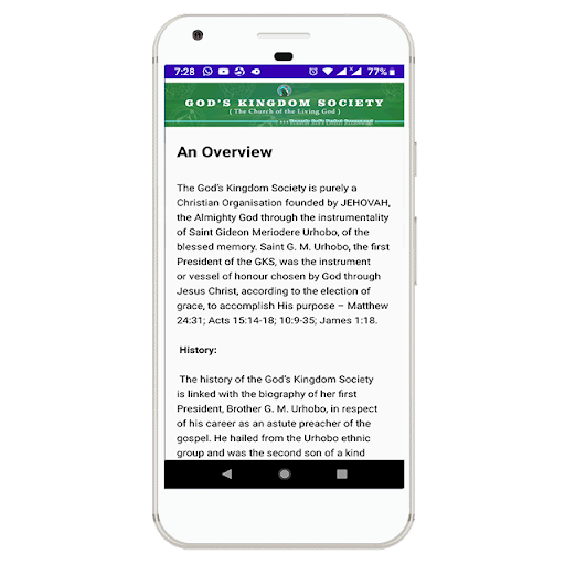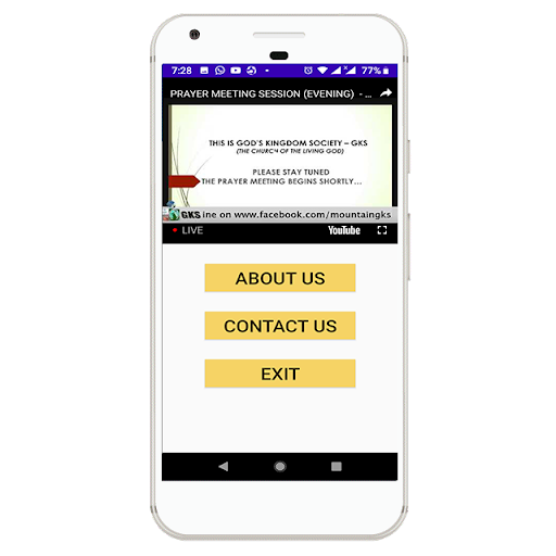 This android application is used for watching live Divine Services, Midweek Bible Study Meetings and other meetings of the Church (God's Kingdom Society, GKS), streamed live.