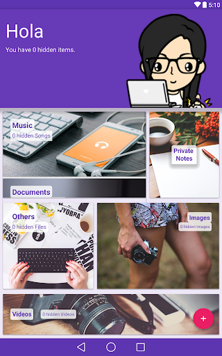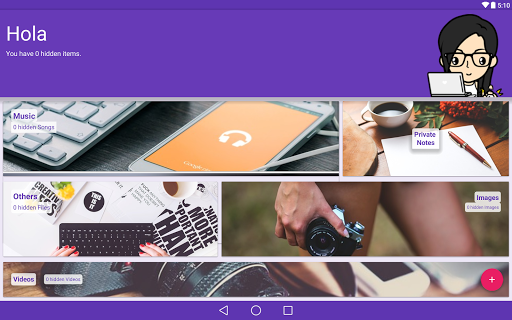 Hide and lock all of your personal photos,videos,songs,documents or any other file on your device with this intelligently disguised locker app.You can even have secret notes.