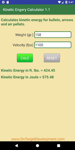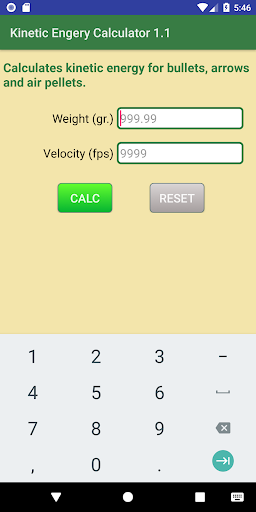 Calculate kinetic energy for bullets, arrows or air pellets.
